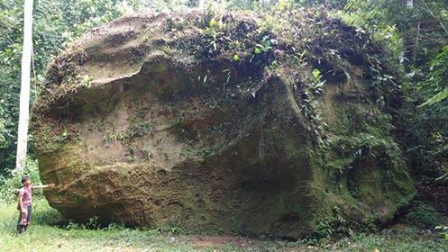 enorme piedra mide unos 9 metros de longitud y cubierta de petroglifos, me di